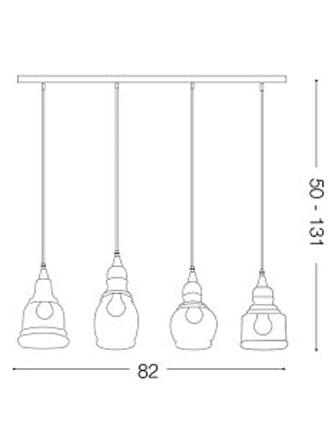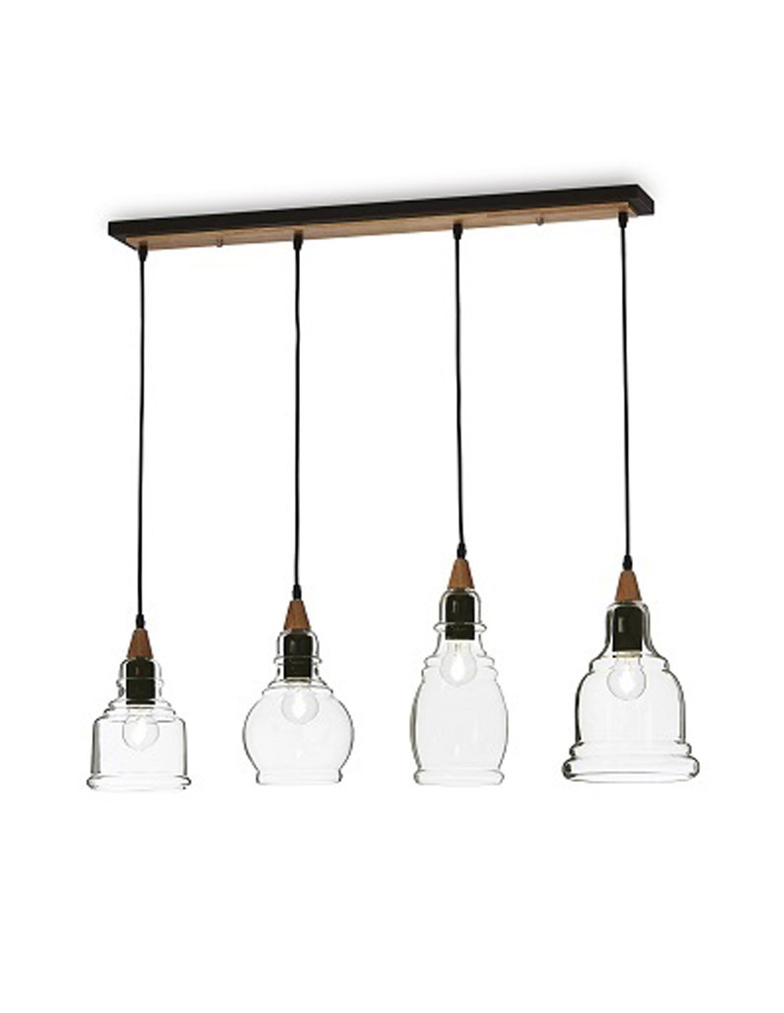 Lámpara de Techo de 4 Luces acabado en metal negro mate y difusor con placas de vidrio transparente. Altura ajustable.