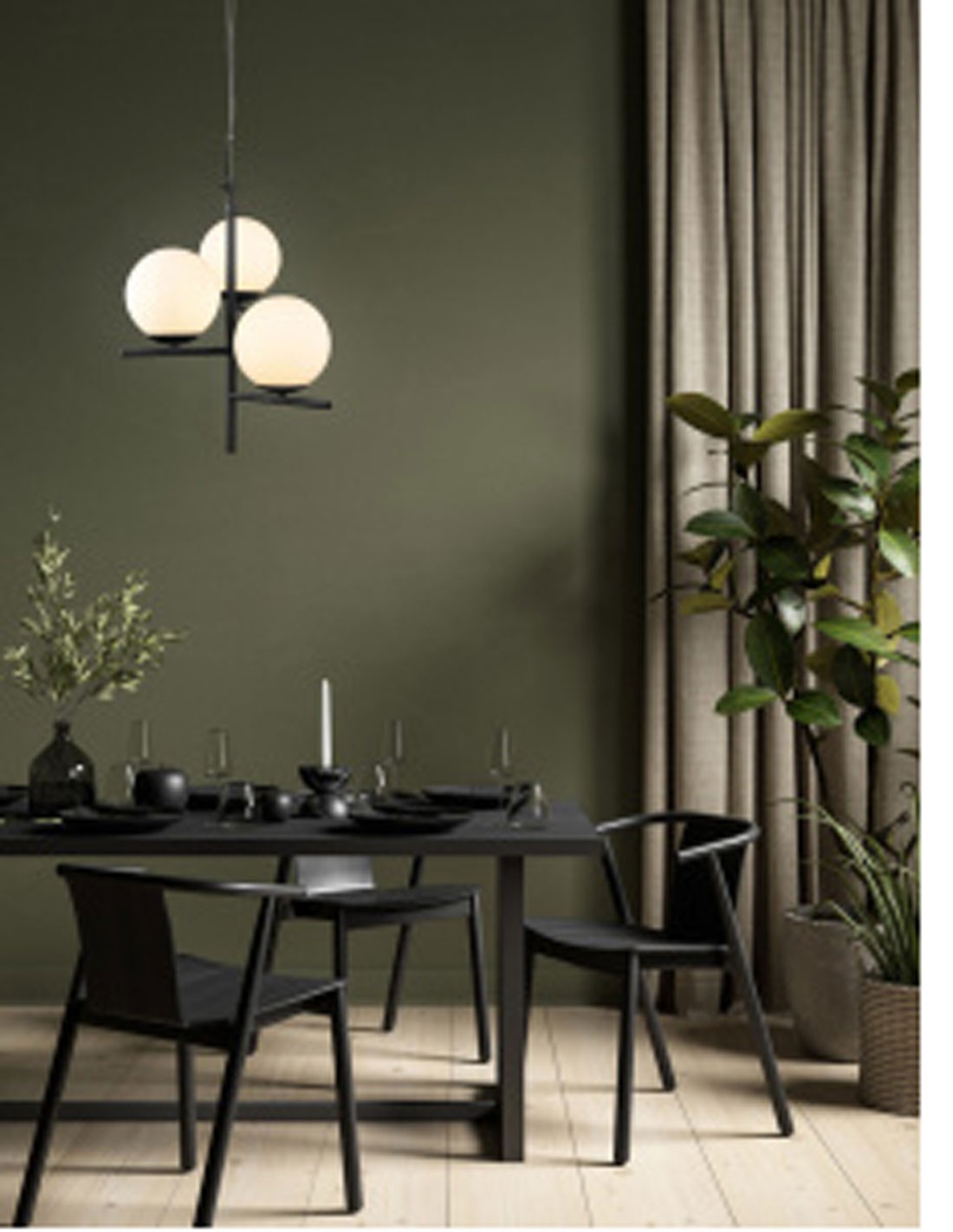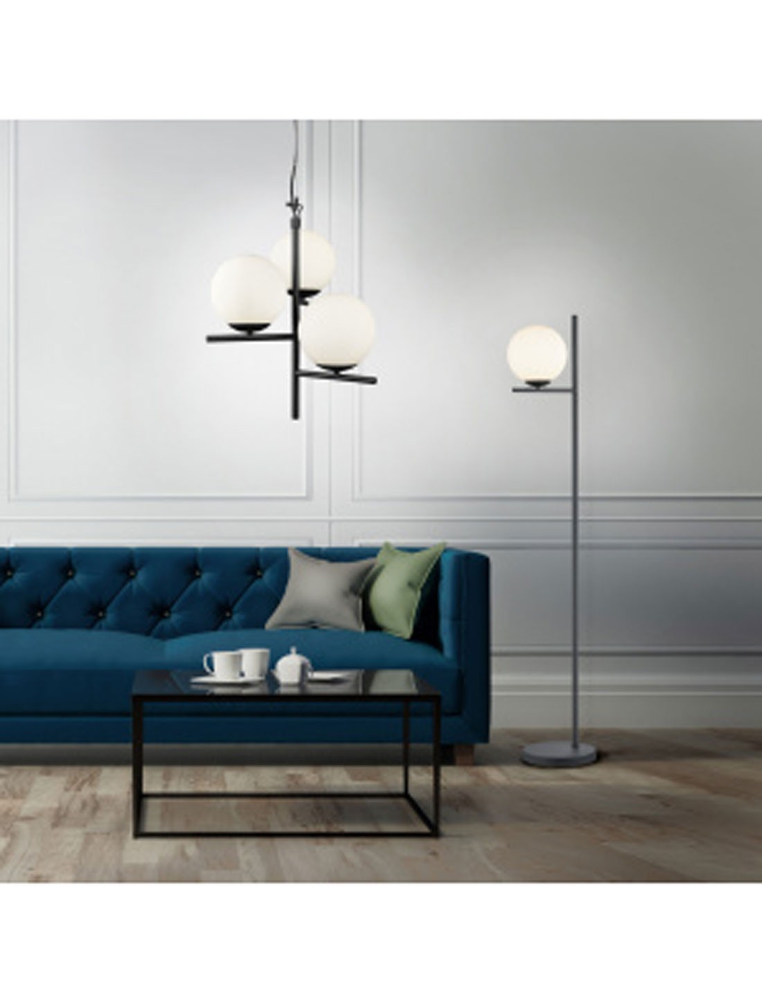 Lámpara Colgante de metal acabado negro con bolas de cristal blancas. Diámetro 40 cm.