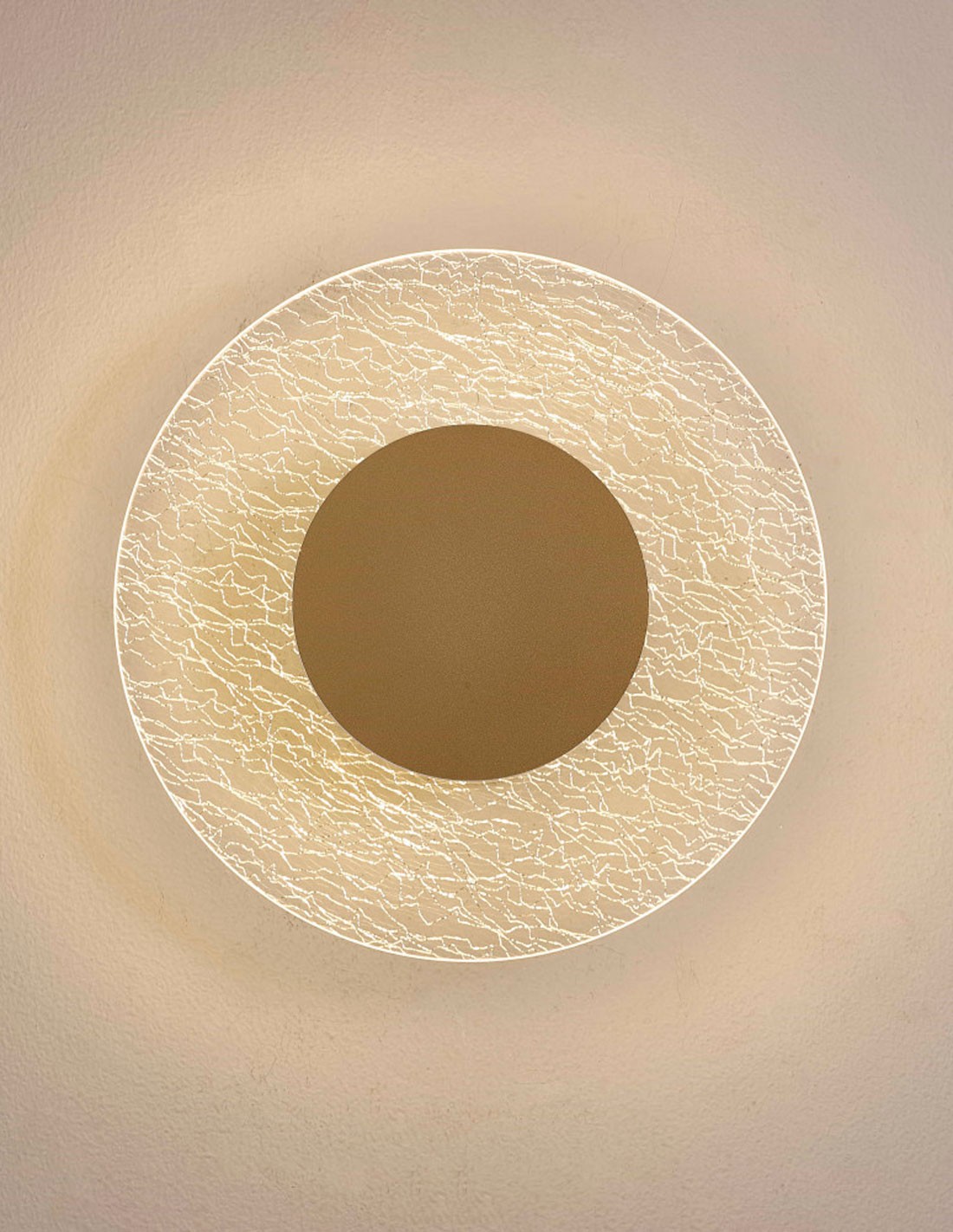 Aplique de Pared LED de aluminio y acrílico acabado oro. Diámetro 50cm.