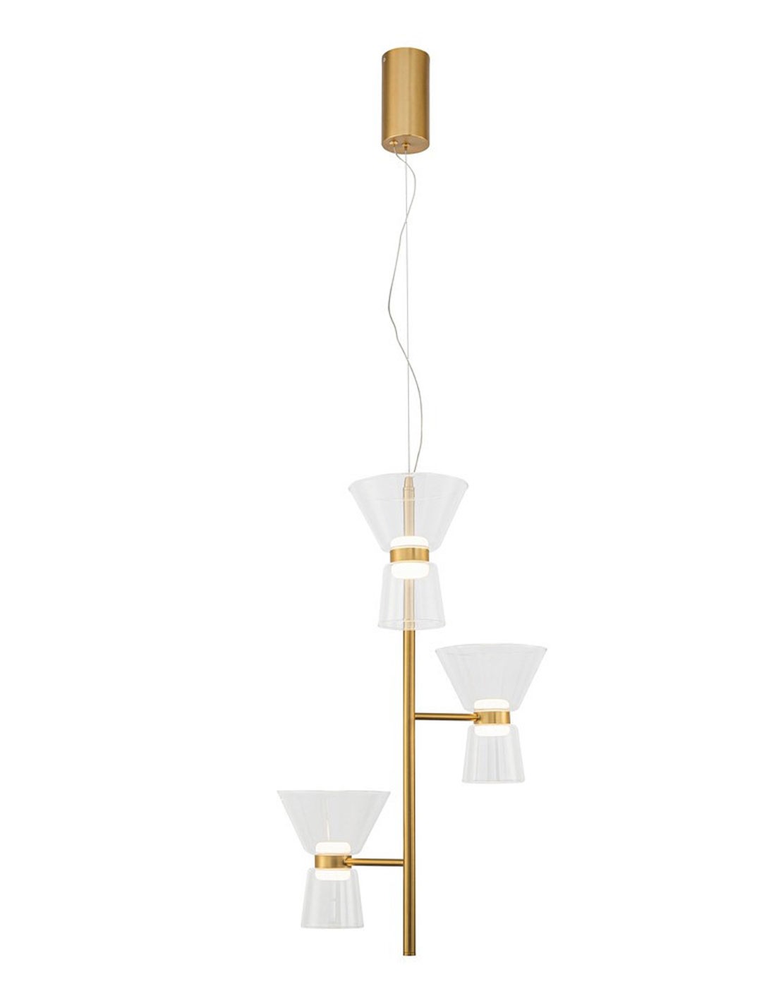 Lámpara de Techo led realizada en aluminio acabado oro y cristal.