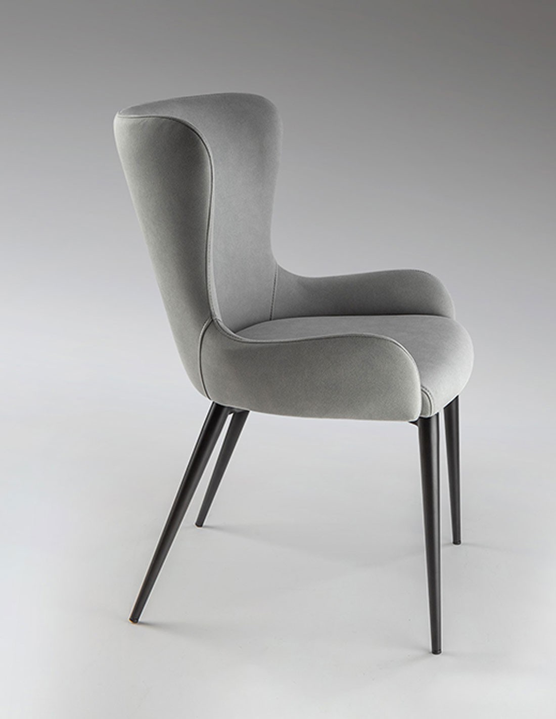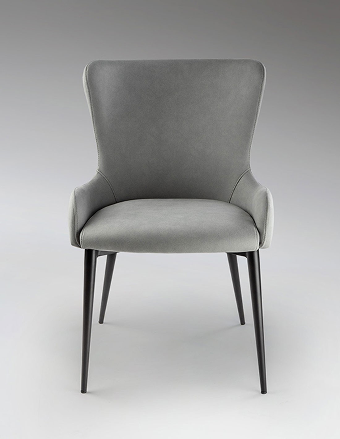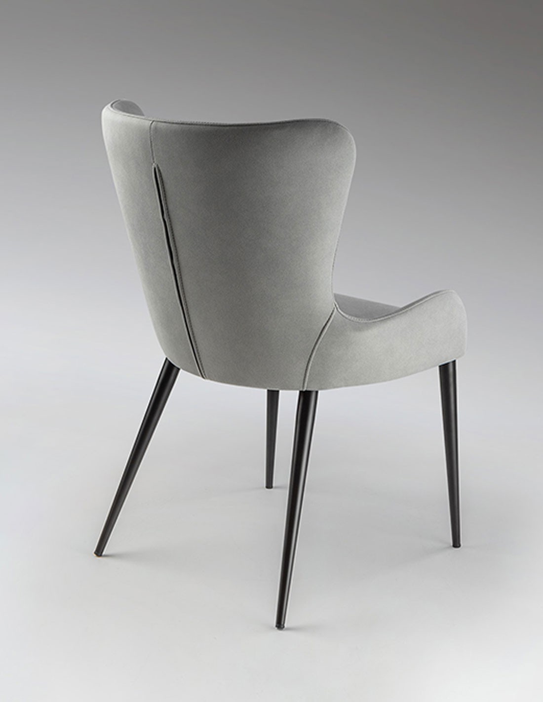 Silla Telma realizada en metal acabado negro mate tapizado textil de poliester 100% gris claro.