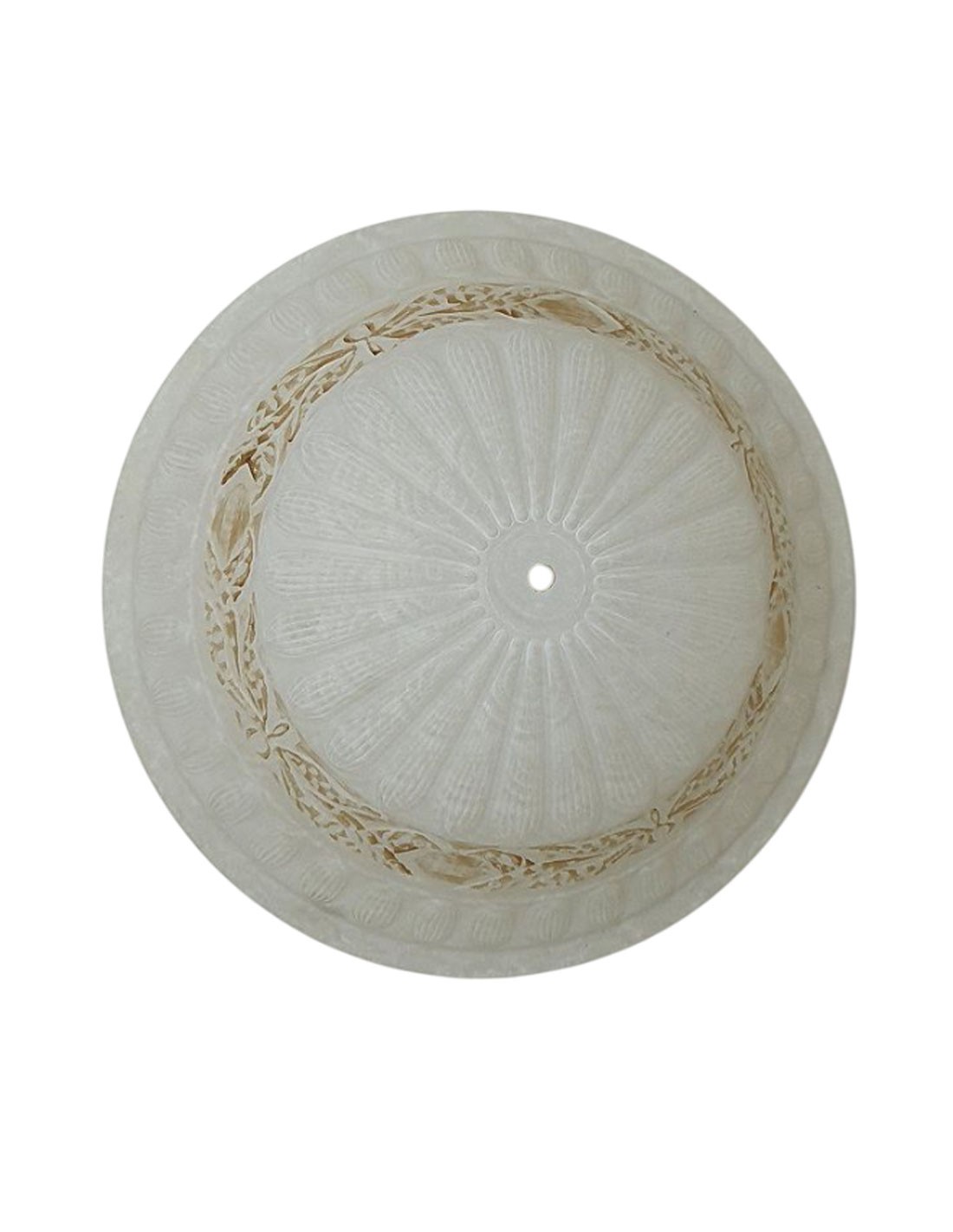 Plato de Cristal de 22 para plafón con taladro de 1CM con terminación blanca con relieve en fundido de cristal.