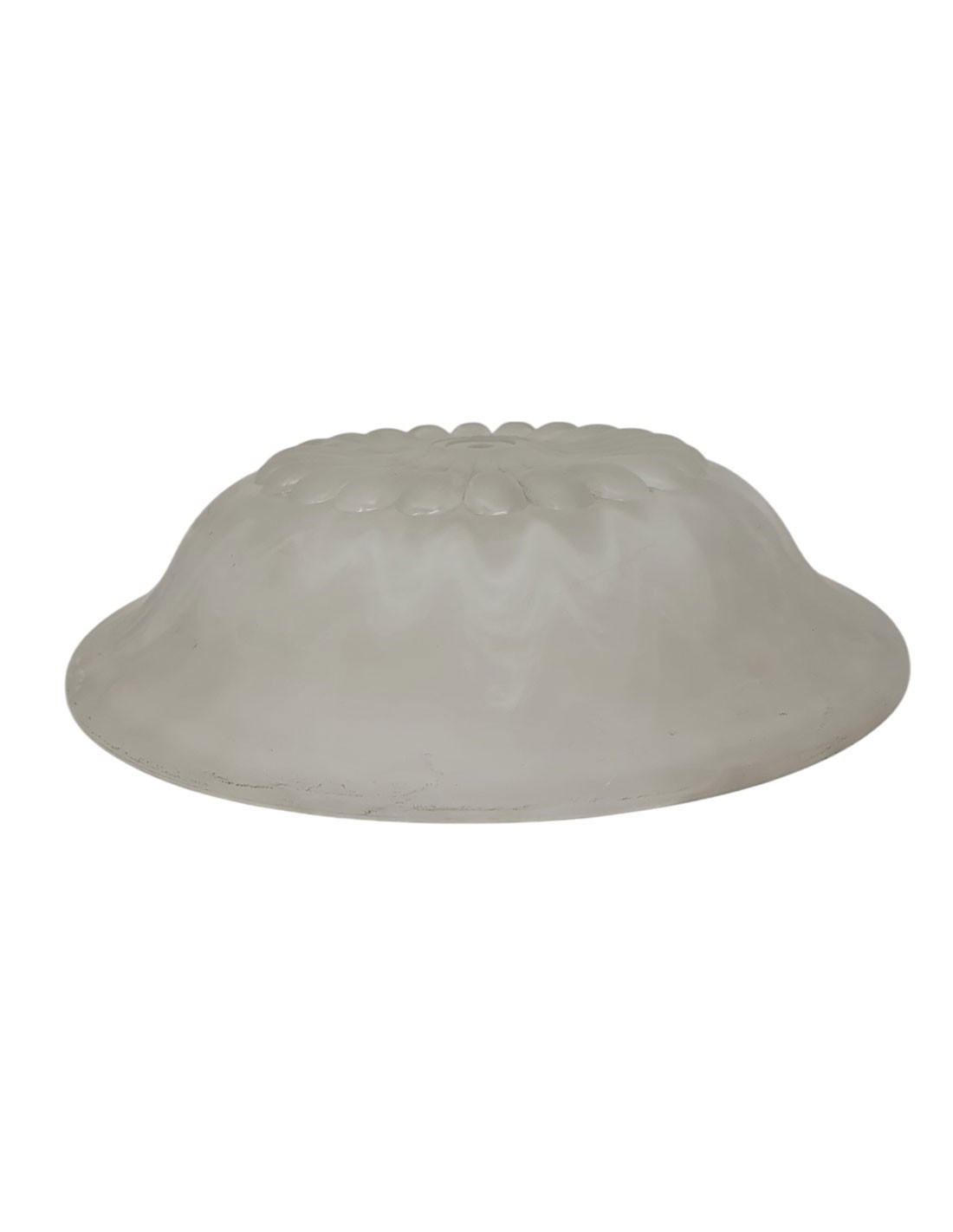 Plato de Cristal de 22 para plafón con taladro de 1CM con terminación blanca con relieve en fundido de cristal.