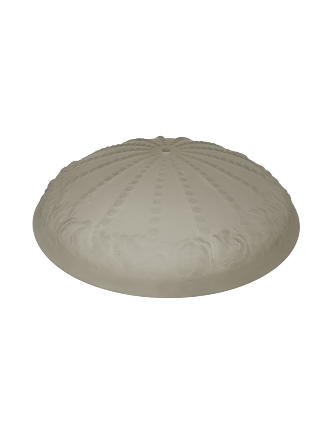 Plato de Cristal de 22 para plafón con taladro de 1CM con terminación blanca con relieve en fundido de cristal.