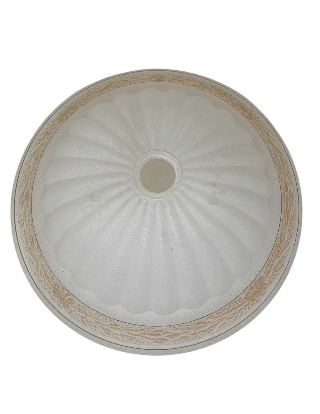 Plato de Cristal de 22 para plafón con taladro de 1CM con terminación blanca con relieve en fundido de cristal.