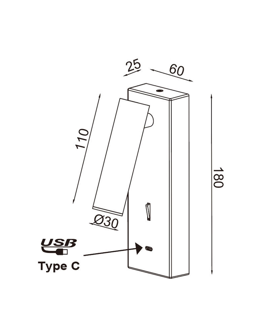 Aplique de Pared Led con lector e interruptor de aluminio acabado blanco. Incorpora cargador USB tipo C.