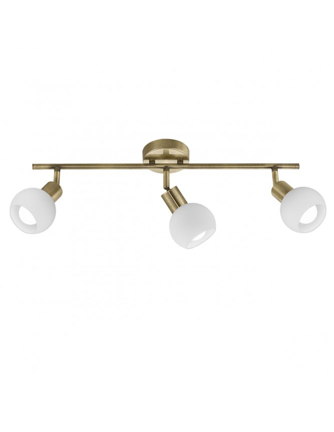 Lámpara Plafón de 3 Luces de metal cuero con tulipas de cristal opal abiertas con rótula.