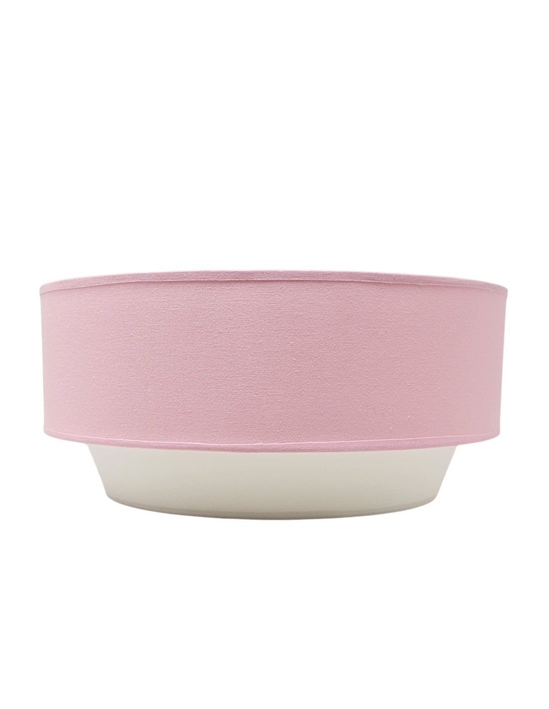 Lámpara Plafón 3 luces con doble pantalla textil acabado rosa y blanco.