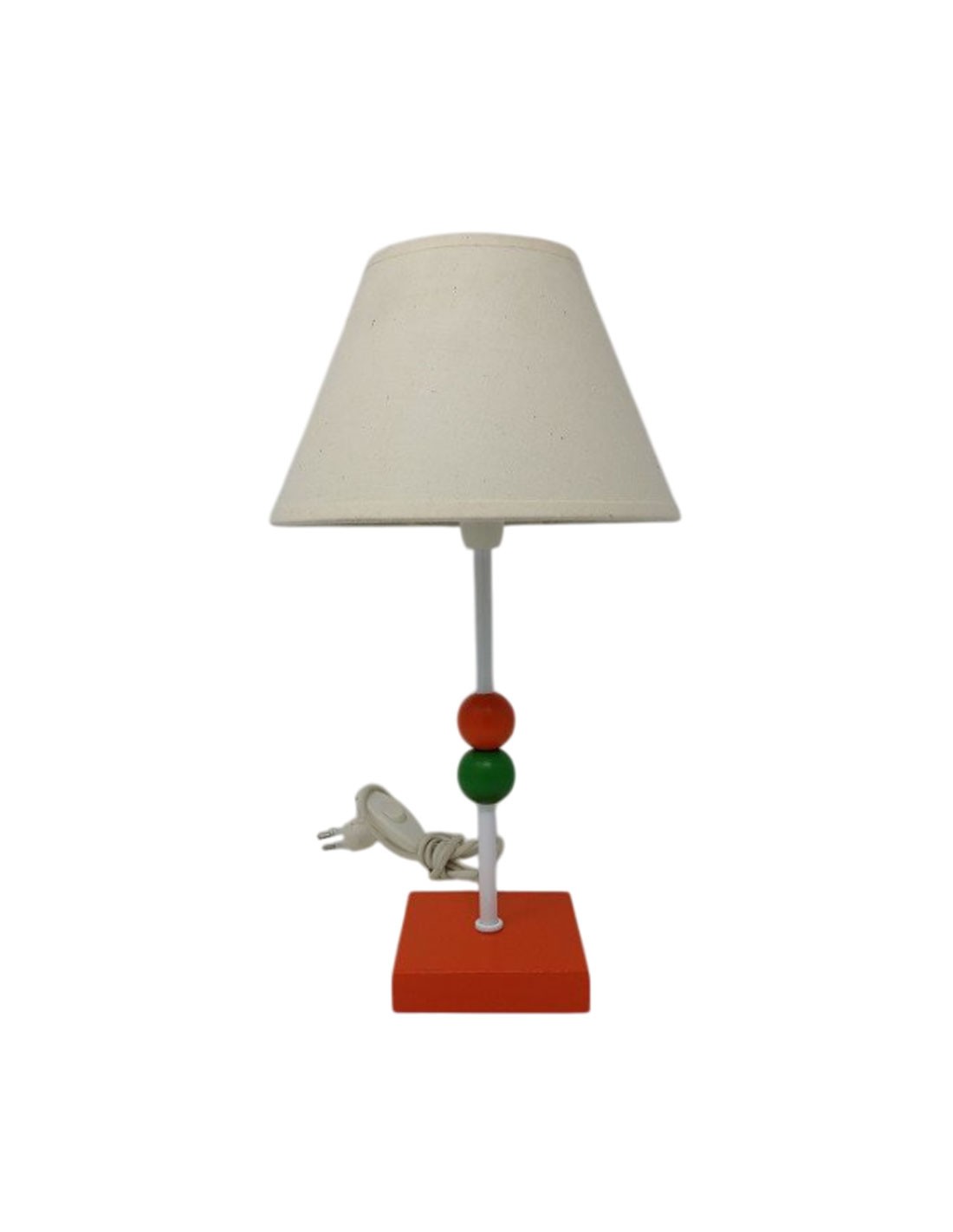 Lámpara de Sobremesa de metal y madera con círculo y base en color naranja de 1 luz y pantalla de tela.1*E14, admite luz led.Disponible en amarillo, naranja, verde, rojo, rosa y azul.