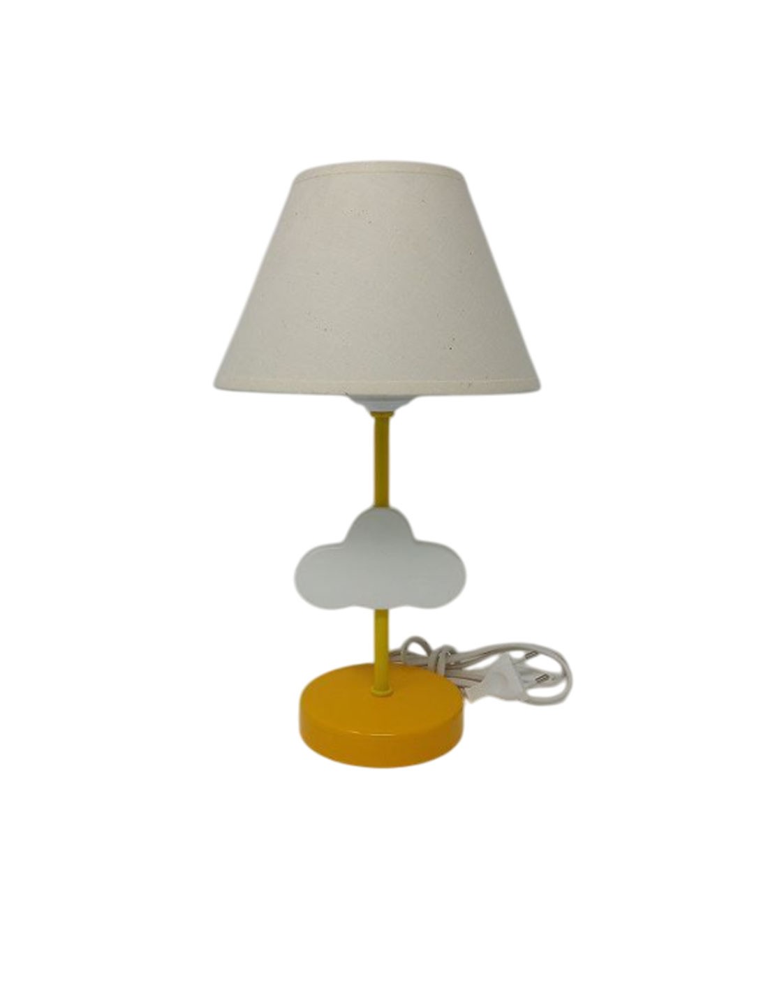Lámpara de Sobremesa de metal y madera con nube en color amarillo de 1 luz y pantalla de tela.