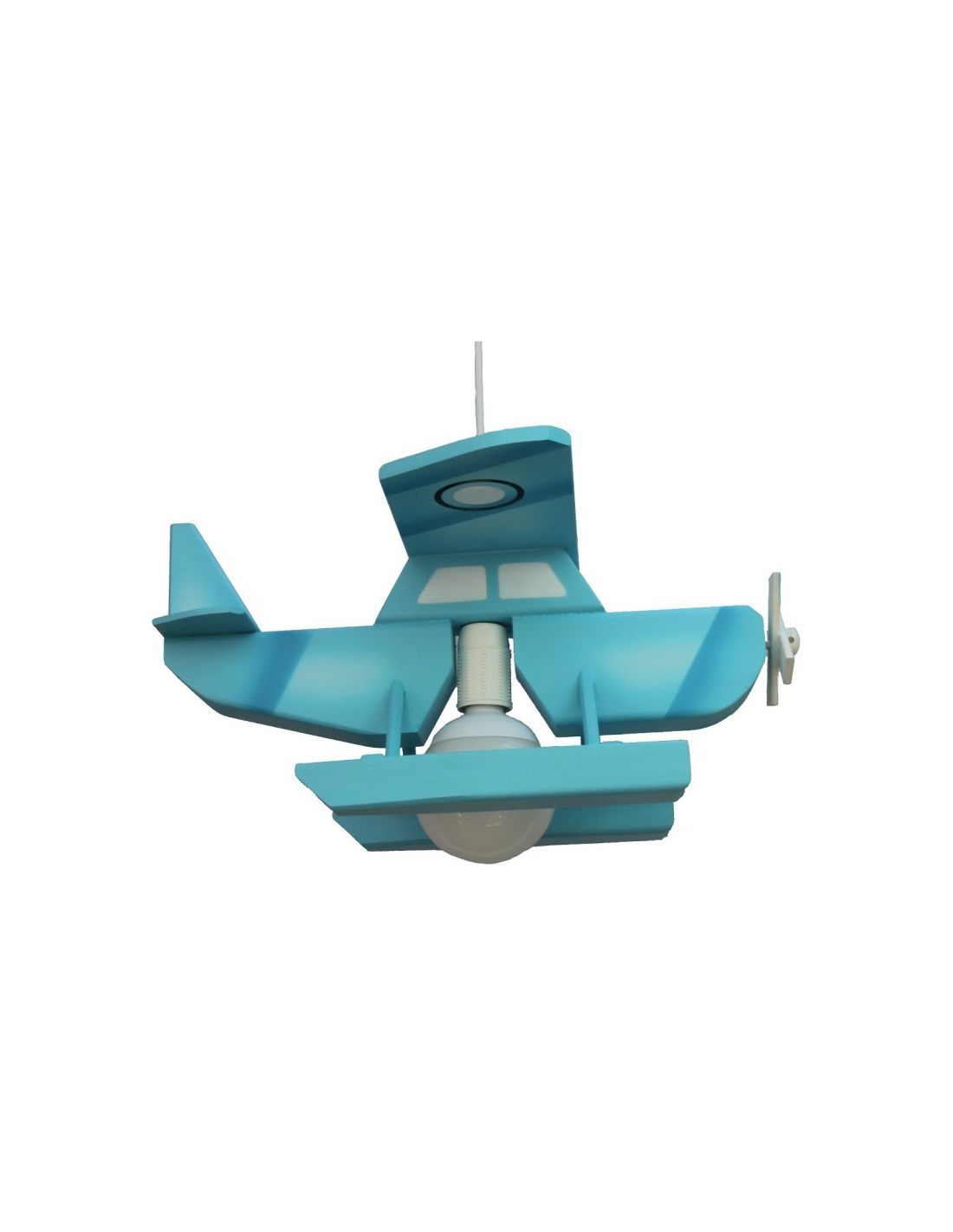 Lámpara de Techo Colgante 2 luces de Madera avión color azul.