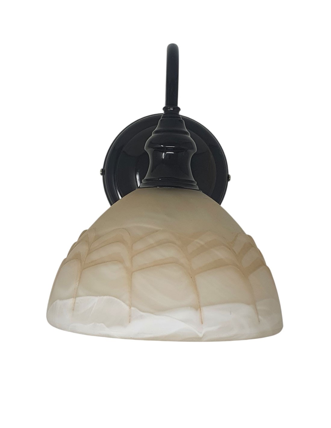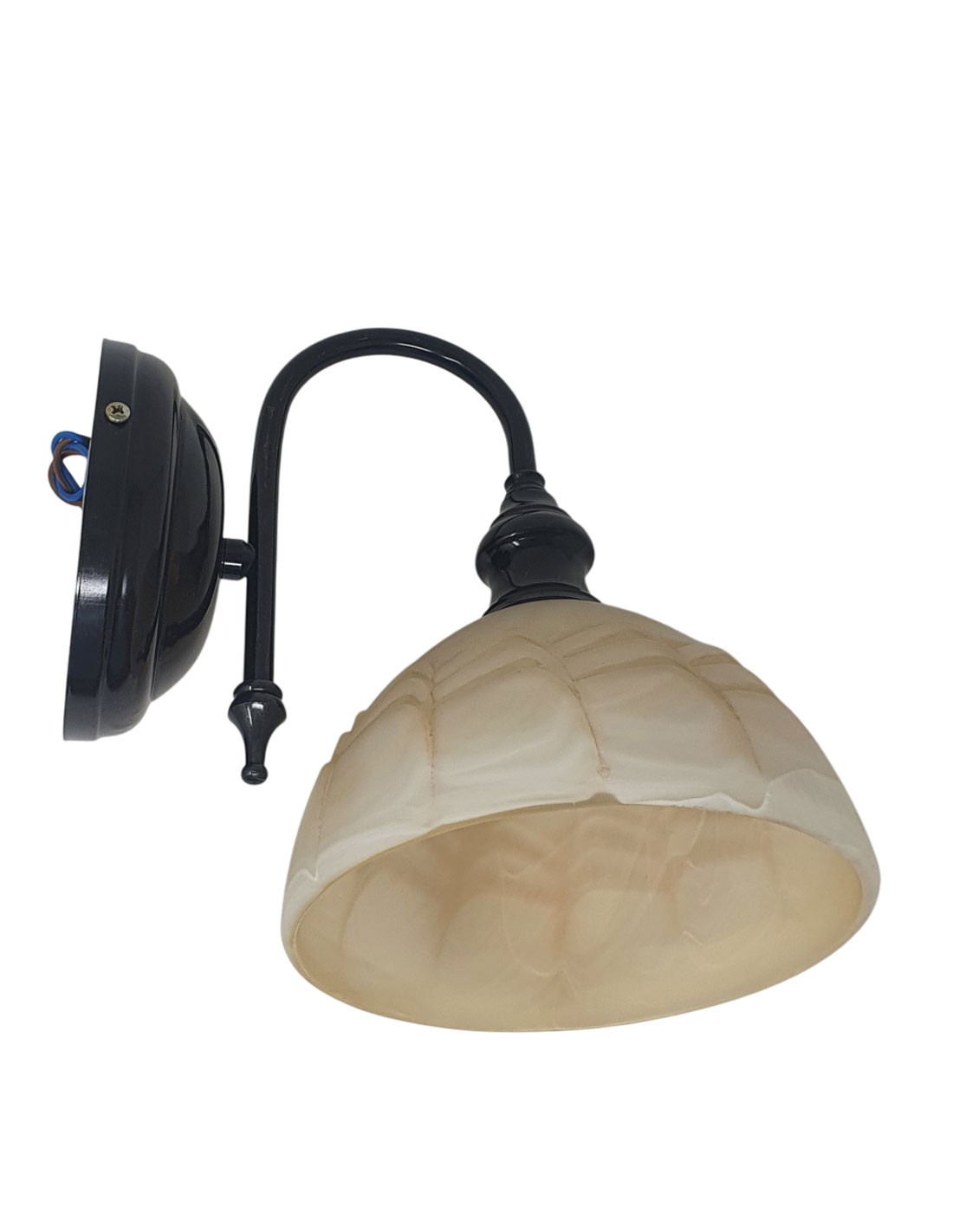 Aplique de pared de 1 luz de metal acabado marrón oscuro. Tulipa de cristal beige con gajos en su parte inferior en relieve.