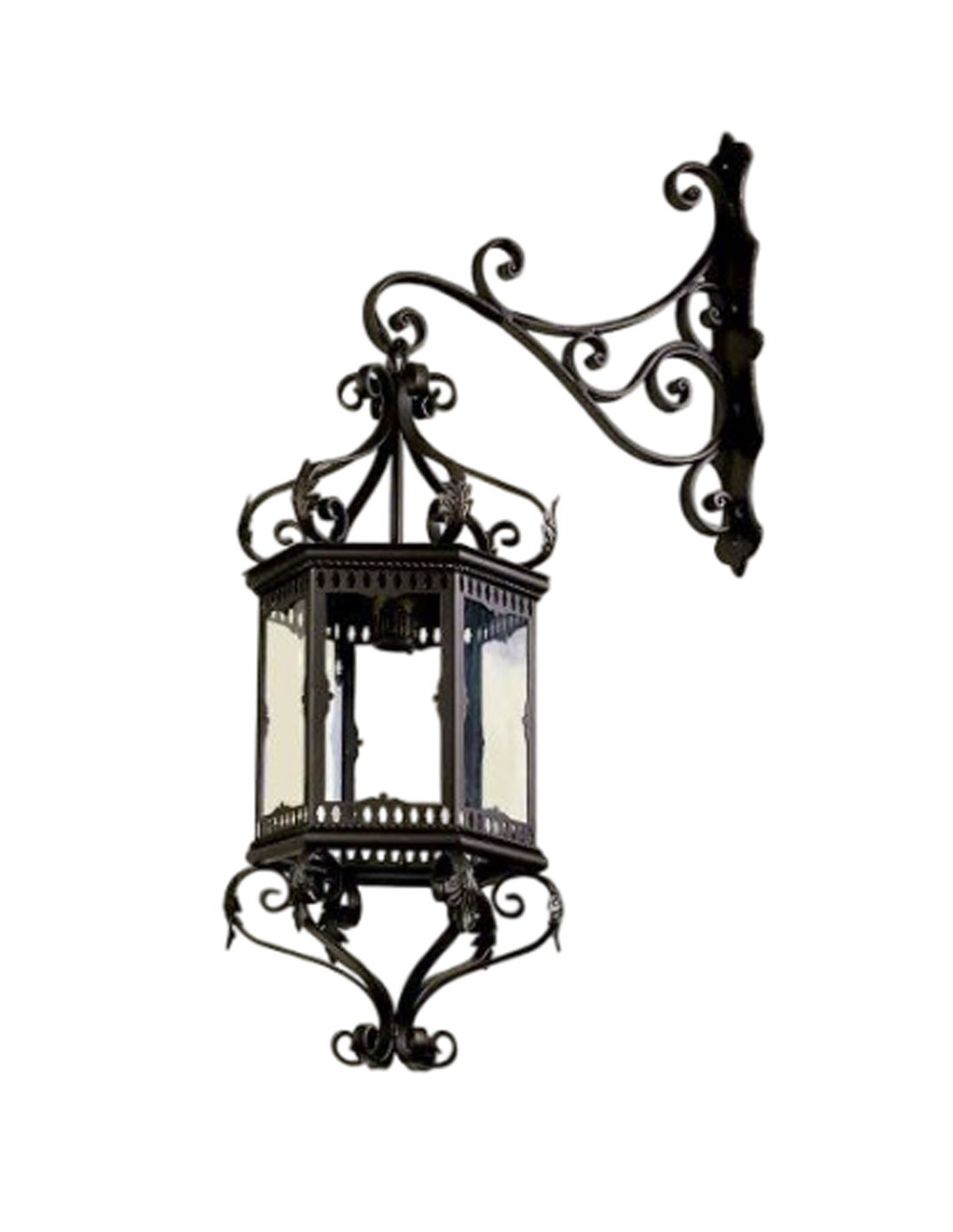 Farol de Pared 1 luz Forja Negra con palomilla para colocar en la pared. 1*E27, Admite Luz Led. Medidas 100*25*55 cm.