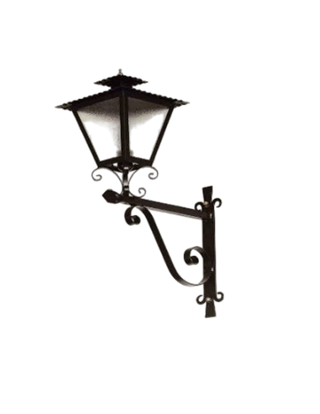 Farol de Pared 1 luz Forja Negra con pescante para la pared fabricado con rizos de hierro forjado en forma de S. medidas 87*35*60. Farol Pared Villa 27,5