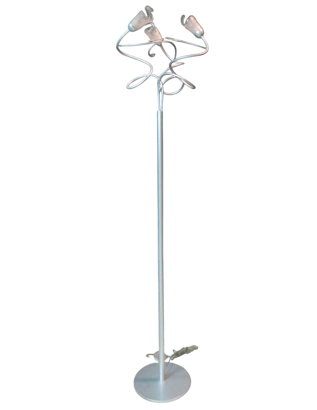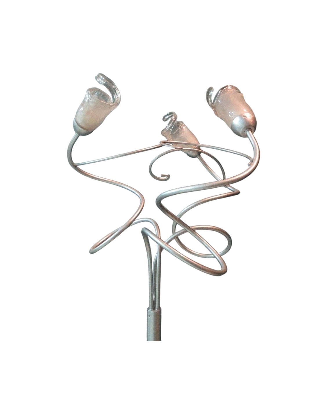Lámpara Plafón de techo Led decorativo níquel satinado con 3 brazos en forma de lazo. Fabricado en aluminio y silicona.LED 40W-4000lm- 4000K (Luz neutra)Ip20. Angulo de apertura 260º.