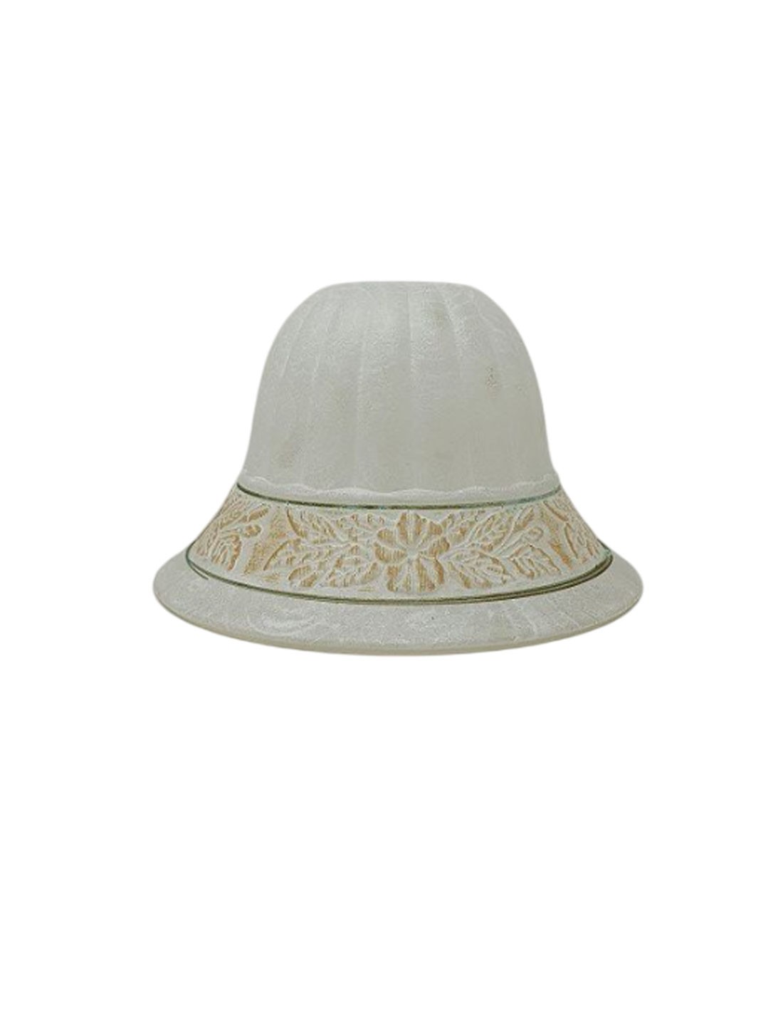 Tulipa de Cristal media bola blanca grabado marrón, agujero diámetro 4 cm para casquillo E27.