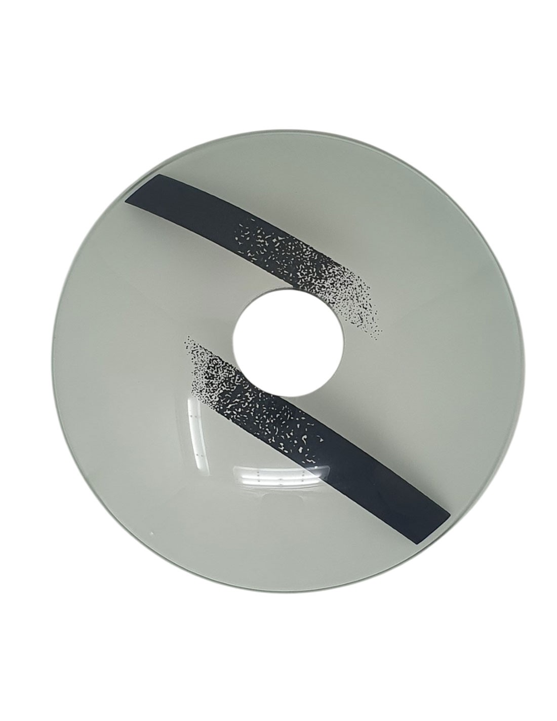 Tulipa de Cristal media bola blanca y amarilla detalle negro, agujero diámetro 4 cm para casquillo E27.