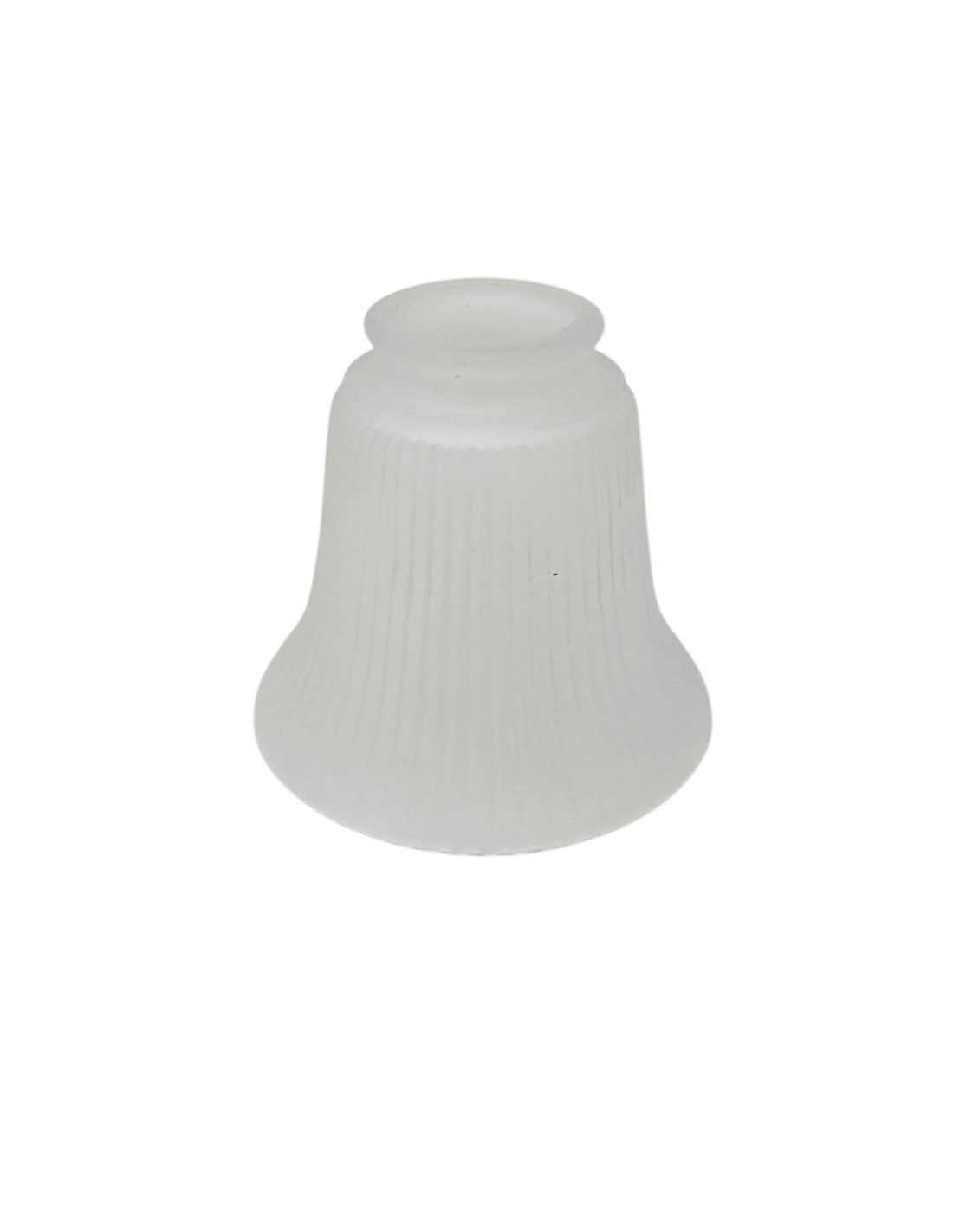 Tulipa de Cristal acido rayada, agujero diámetro 4 cm para casquillo E14, sujeción cogida de graipa, tornillo o pinza con cuello.