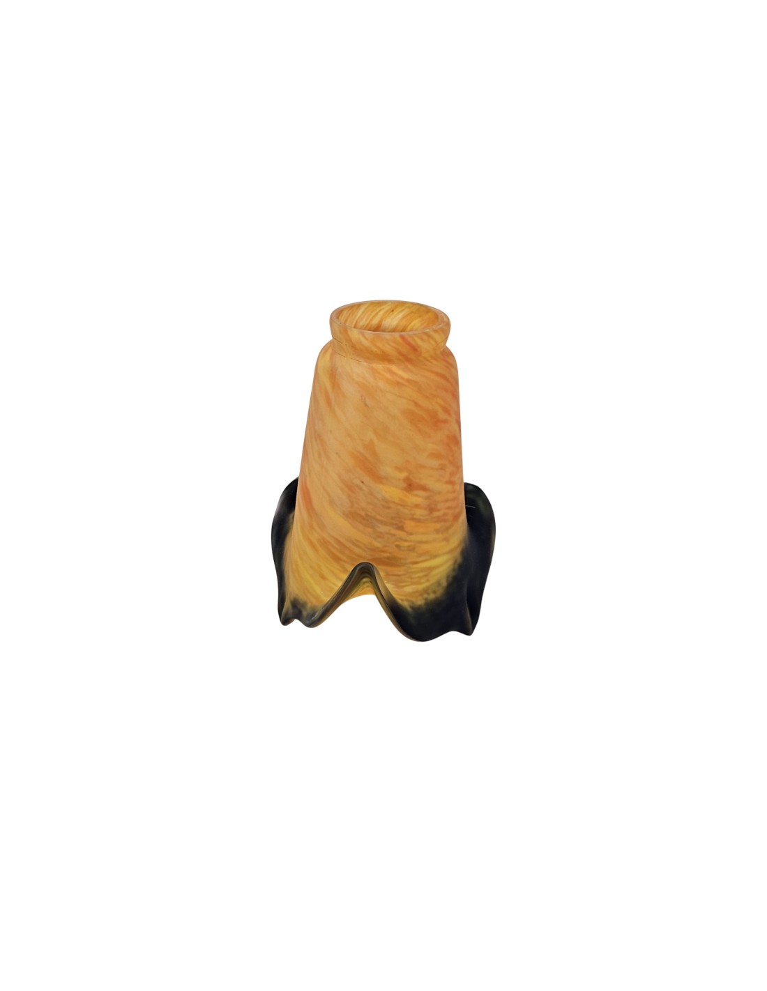 Tulipa de Cristal media bola blanca y amarilla detalle negro, agujero diámetro 4 cm para casquillo E27.