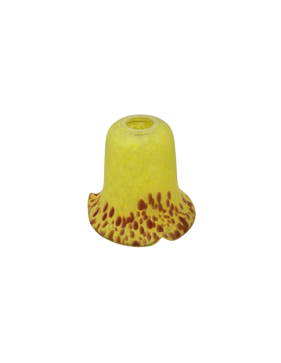 Tulipa de Cristal media bola blanca y amarilla detalle negro, agujero diámetro 4 cm para casquillo E27.