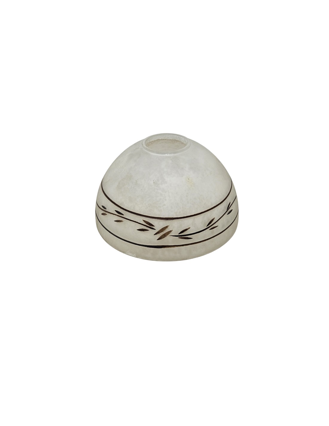 Tulipa de Cristal media bola blanca grabado marrón, agujero diámetro 4 cm para casquillo E27.